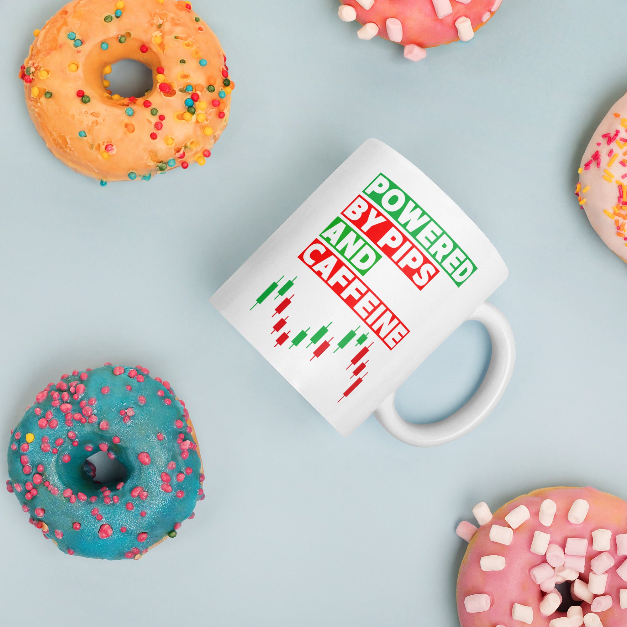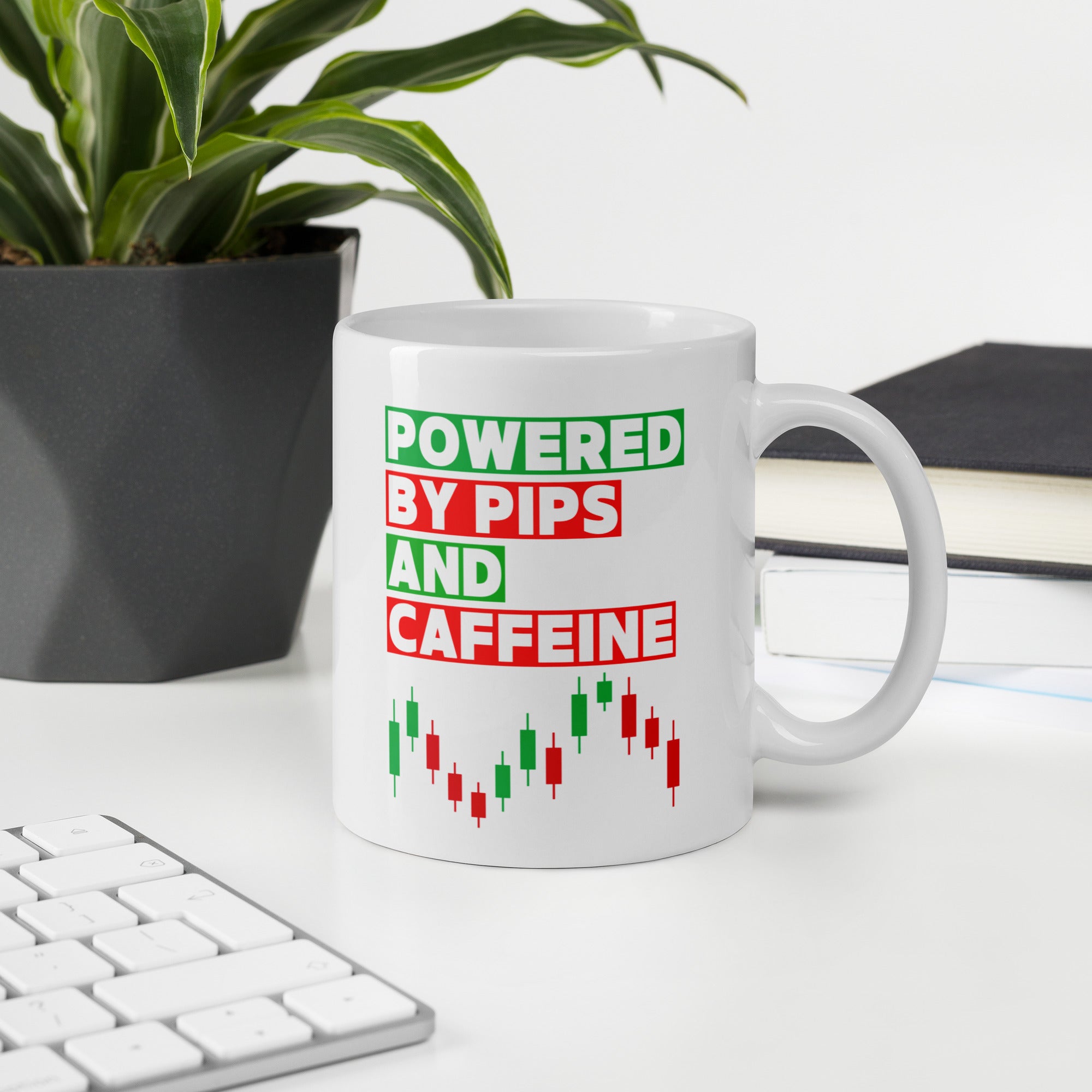 Forex Trader Coffee Mug Powered by Pips and Caffeine – Funny Forex Candle Stick Chart Gift for Day Traders, Investors & Finance Lovers