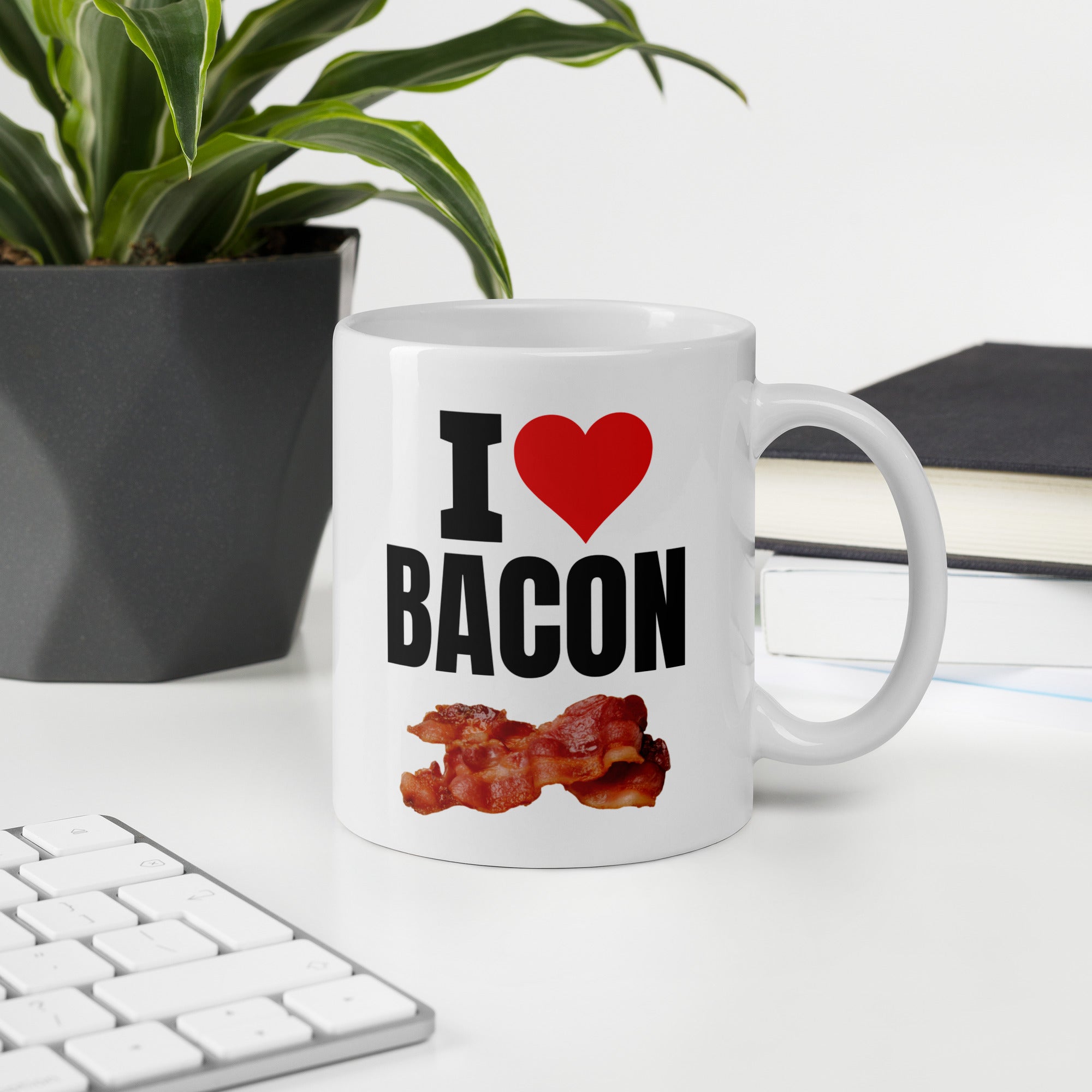 I Love Bacon Coffee Mug 11oz – Funny Meat Themed Mug for Bacon Fans, Food Lovers, Breakfast Gifts, Grill Enthusiasts, Kitchen Humour
