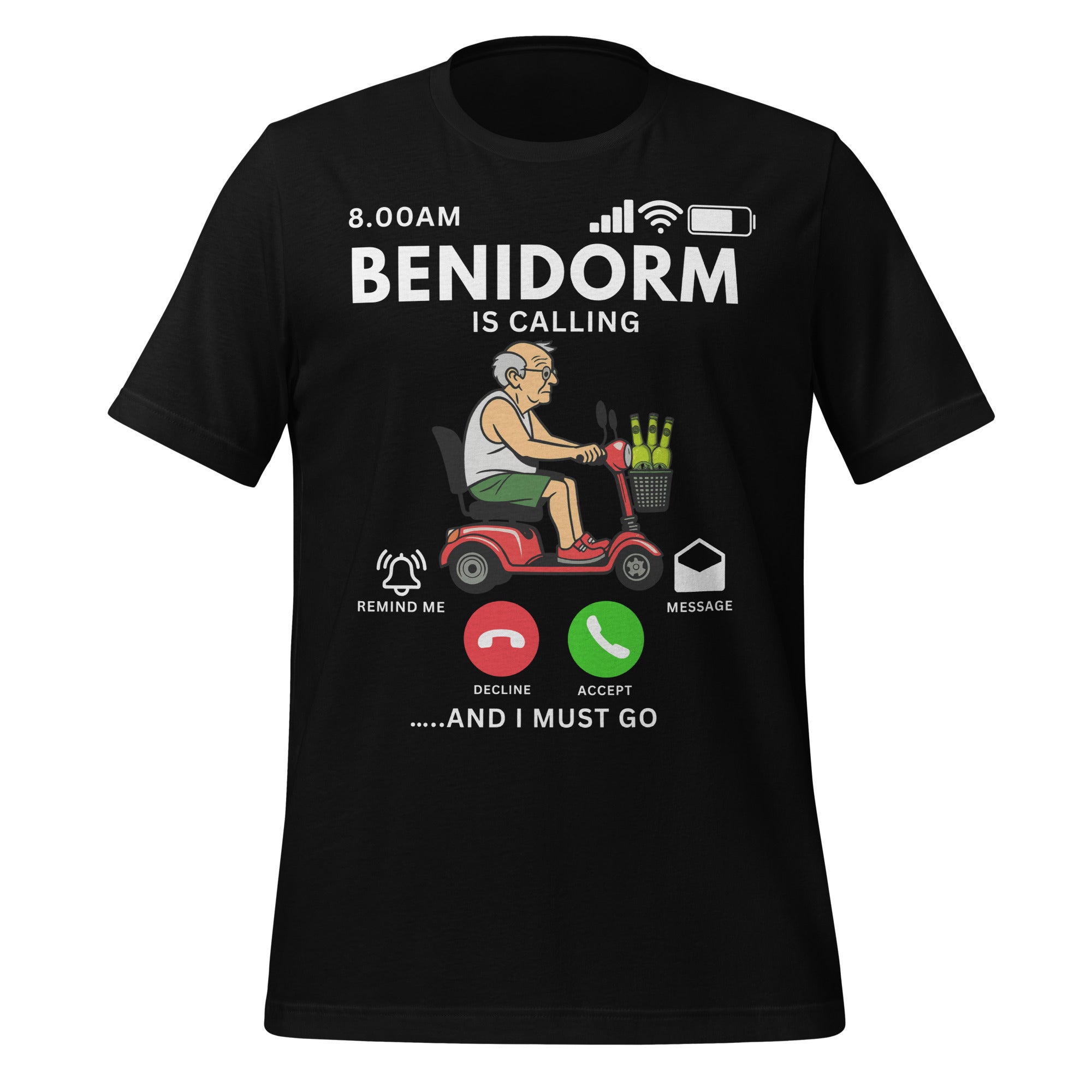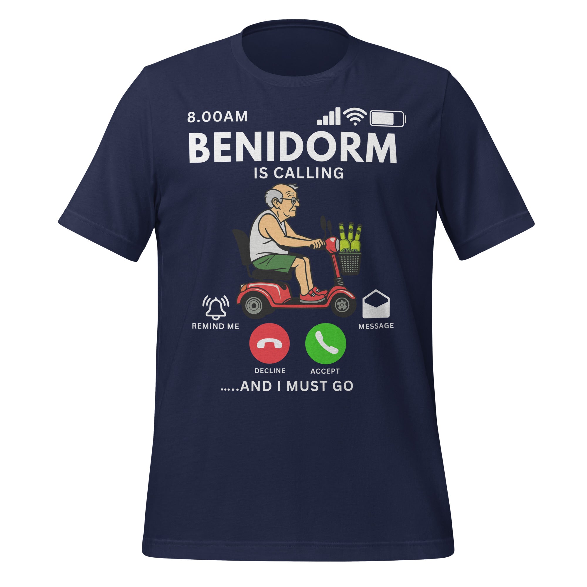 Benidorm Funny Holiday T-Shirt – Benidorm is Calling Retro Summer Tee, Stag Do Shirt, Beach Party Outfit, Gift for Friends or Grandad
