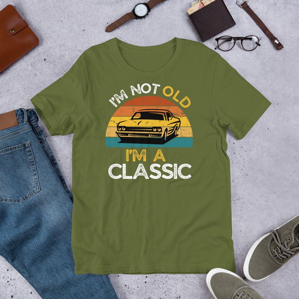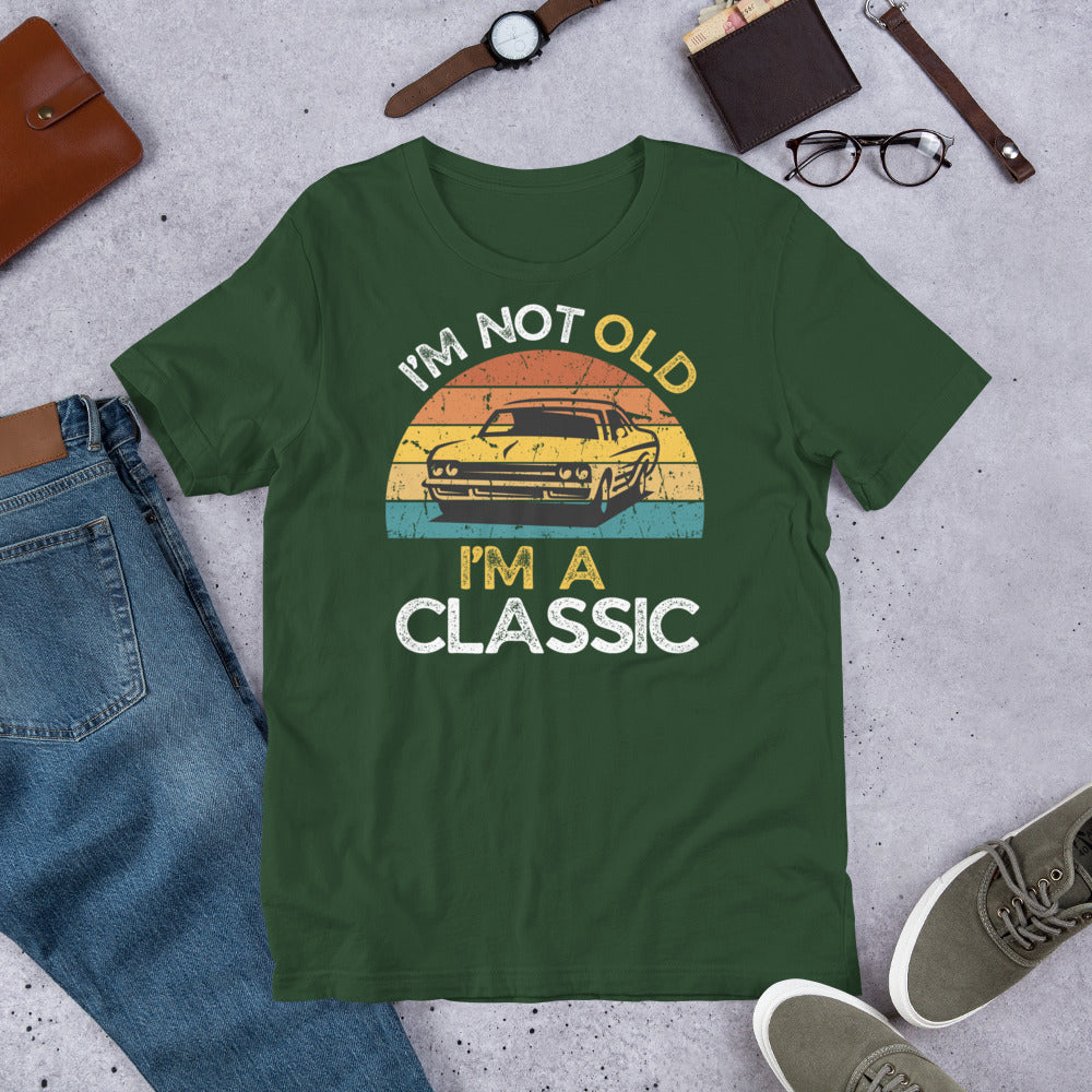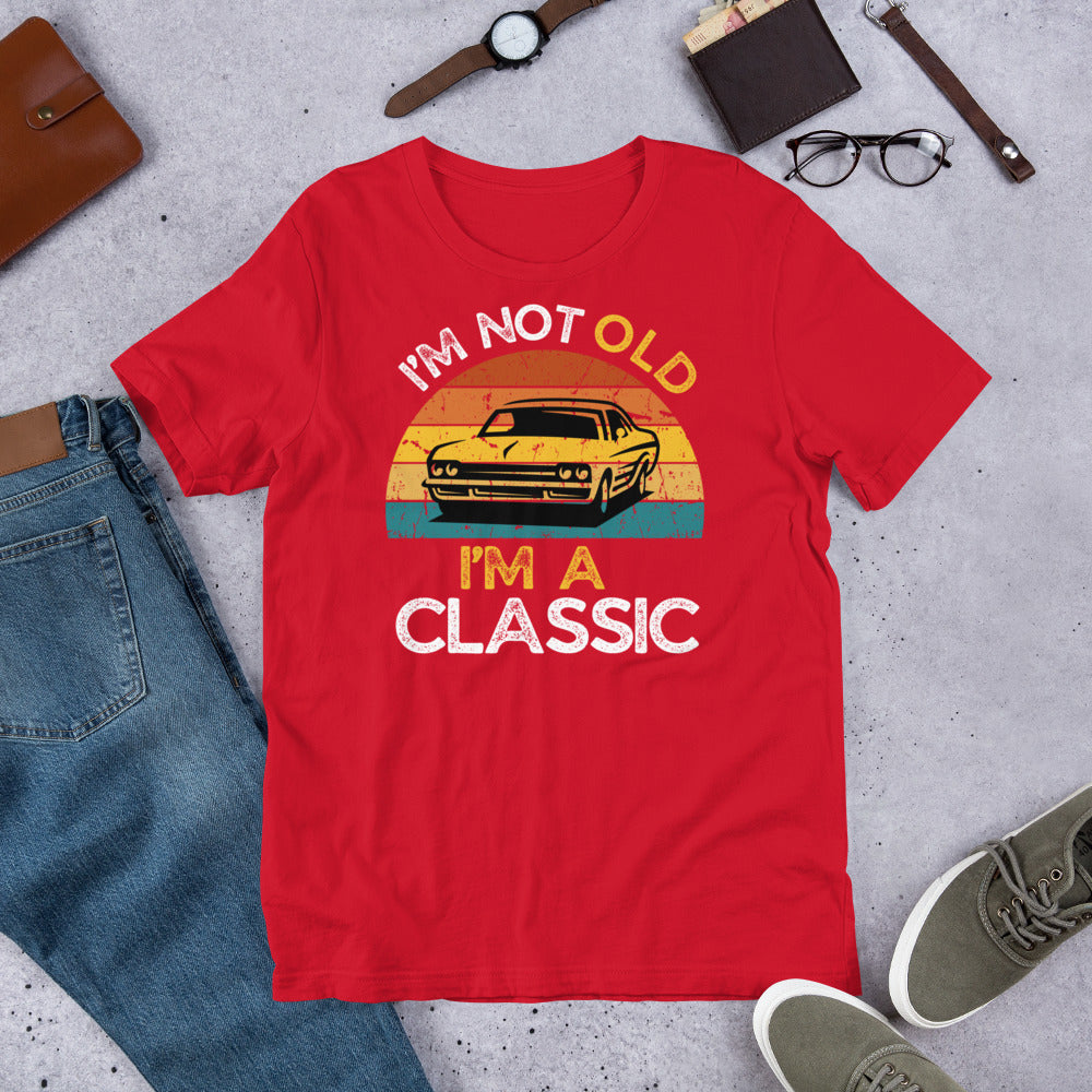 This retro-style t-shirt is the perfect Dad Gift for the man who's full of timeless charm! With a classic design and bold lettering, this shirt proudly proclaims, "I'm not old, I'm a classic."Retro T Shirt Treat your dad to a special gift that will remind him of his enduring appeal.