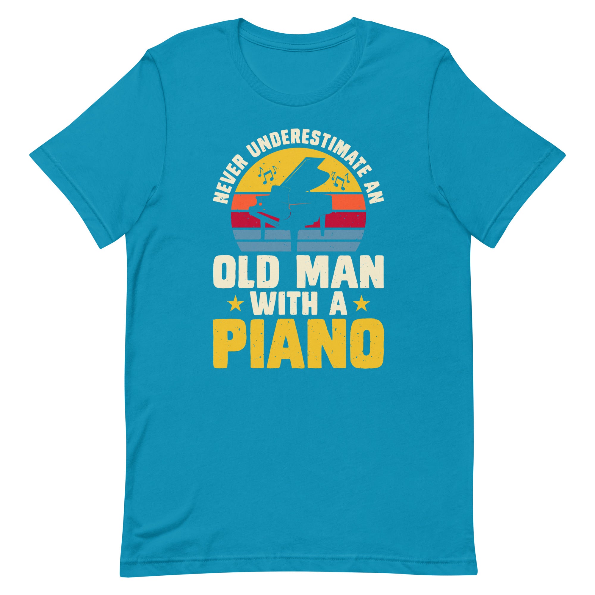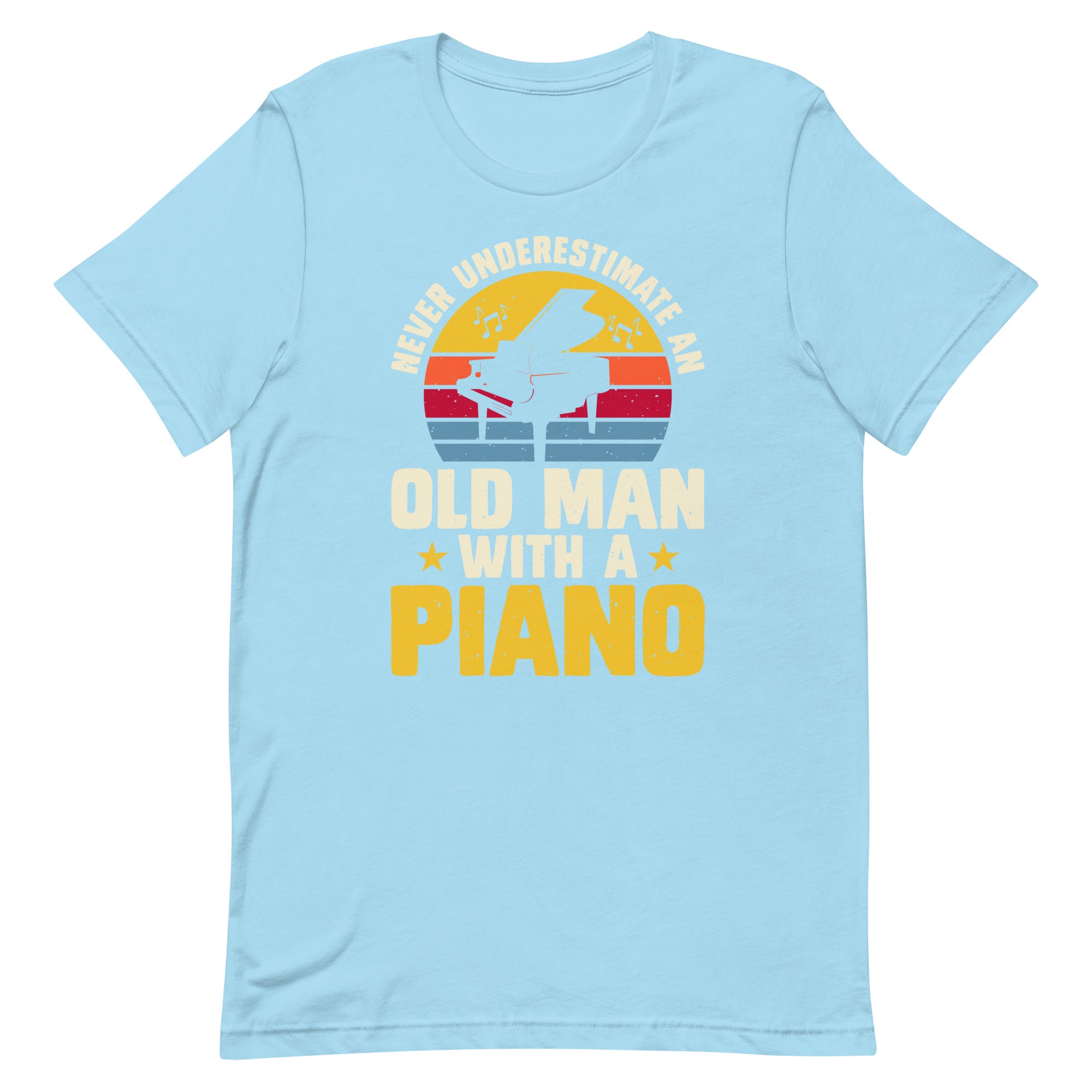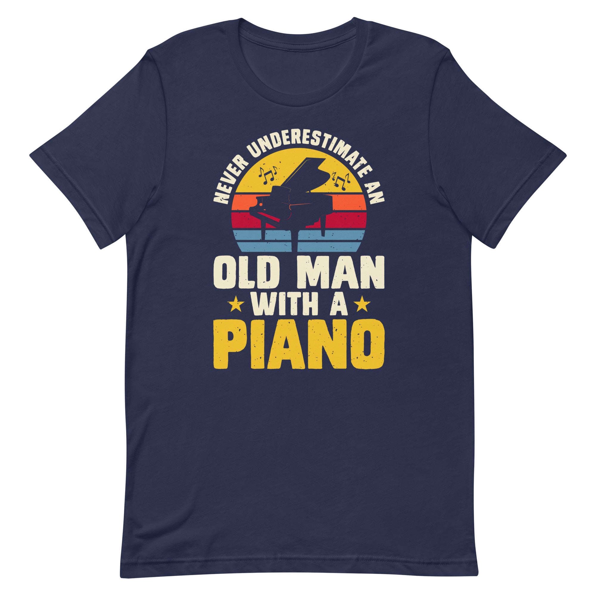 Unleash your passion for music with our Piano Shirt - the perfect gift for any pianist or keyboard player! Made for the avid musician, this shirt proudly displays your love for the instrument. Don't underestimate the talent of an old man - especially on World Piano Day. Get yours today!