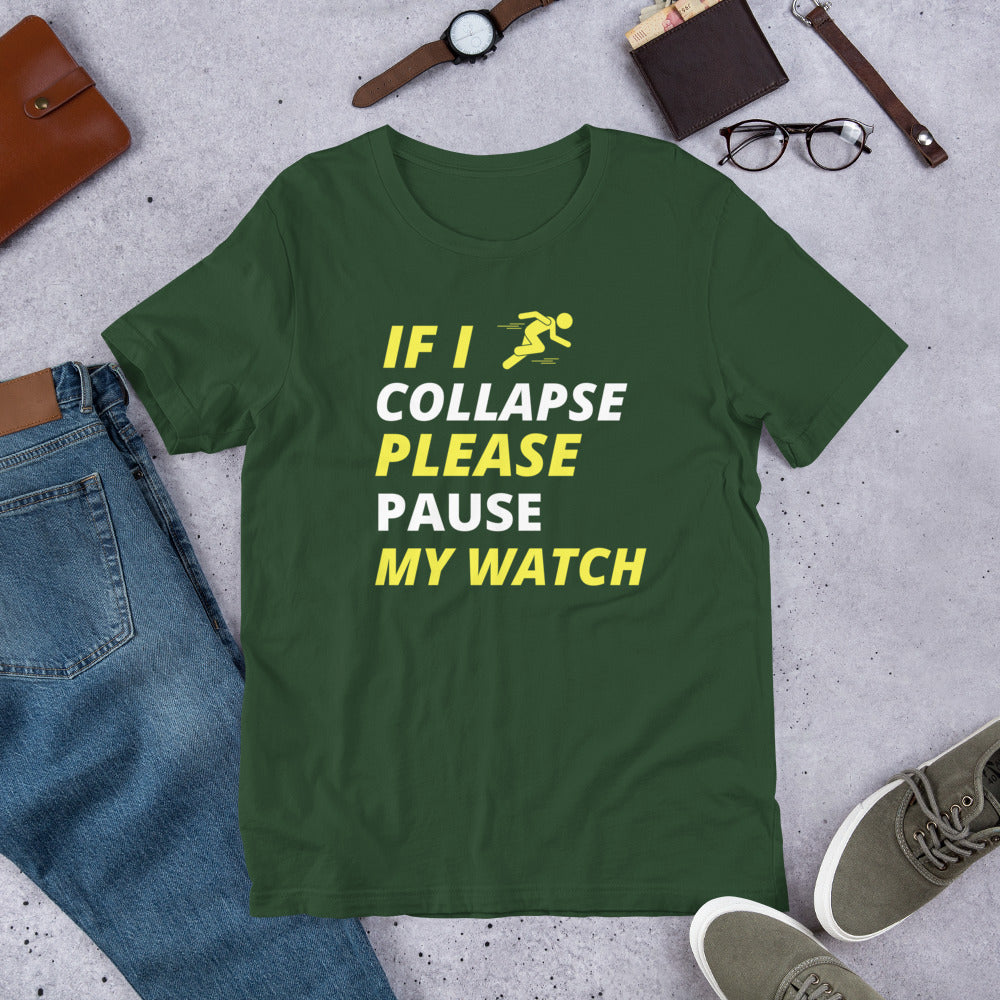 Looking for a unique gift for the Running Fan in your life? Look no further than the if I collapse pause my watch T Shirt ! This unique custom shirt is sure to make them smile, whether they're wearing it out and about or just around the house or on a run . The shirt is made of a high quality fabric and features a printed slogan If I Collapse Pause My Watch on the front. It's the perfect gift for the Person Who loves to run