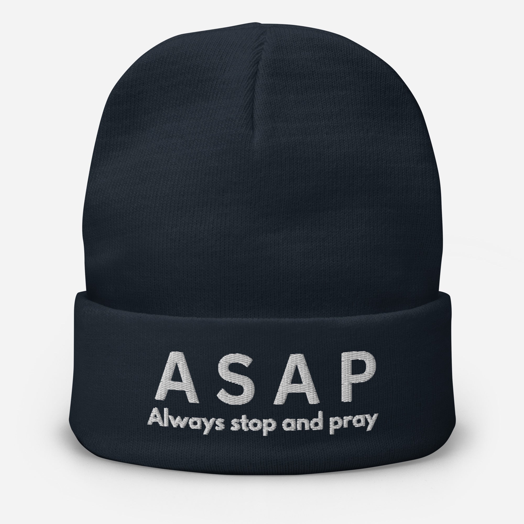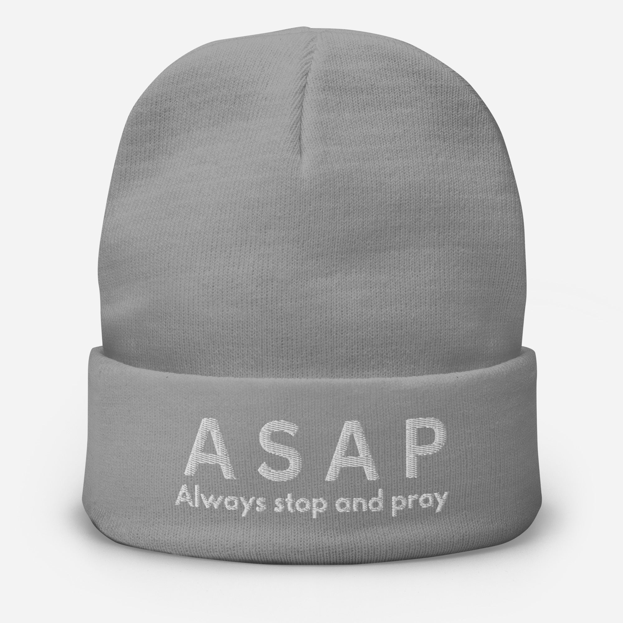 Religious Gift Embroidered Beanie Hat - Christian ASAP Always Stop and Pray Beanie, Faith-Based Winter Hat, Inspirational Christian Apparel