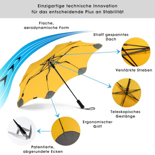 - BUILT TO LAST: – Compact, convenient, and collapsible, the BLUNT Metro is perfect for the urban dweller. Metro is perfectly sized to give you coverage while not taking up too much street space.