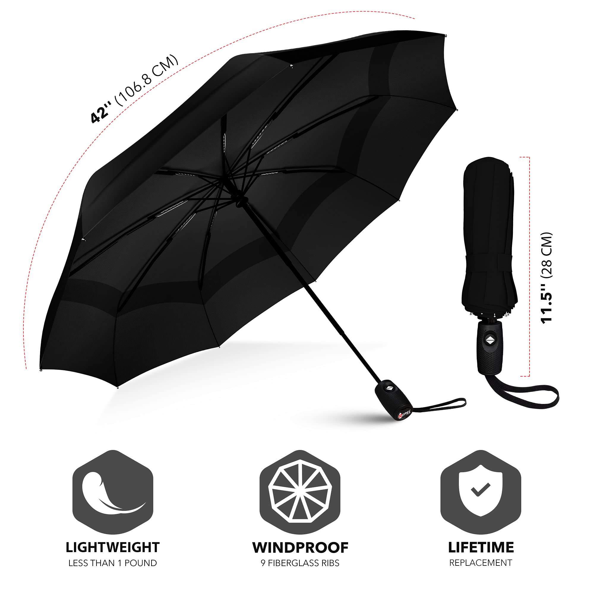 - Included Wrist Strap for Added Convenience: Use the sturdy wrist strap on our travel umbrella to provide extra security during heavy winds and rain, or simply to hang up when not in use