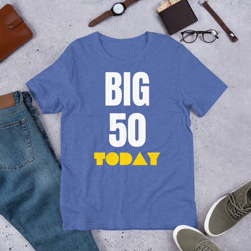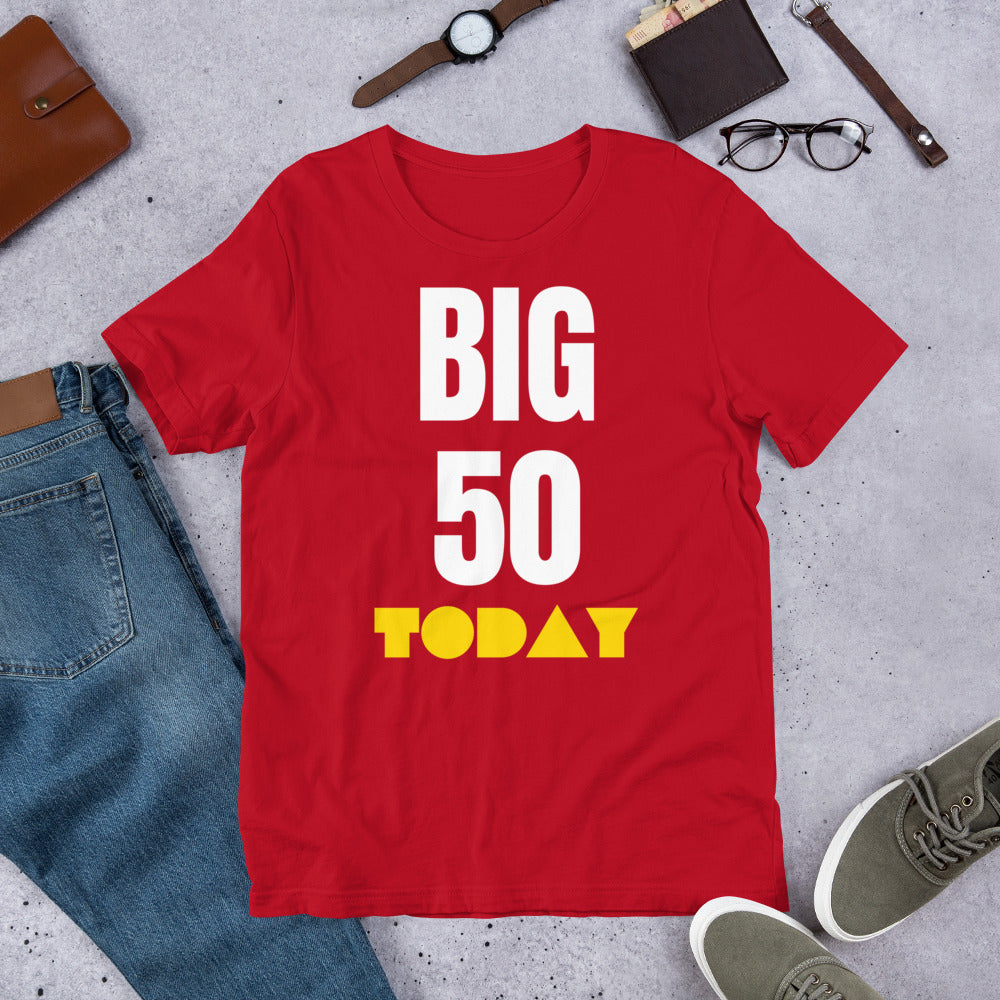 Looking for a unique gift for the Big 50th Birthday ? Look no further than the Big 50 Today printed T Shirt! This Unique shirt is sure to make them smile on there big day , whether they're wearing it out and about or just around the house on There Birthday . The shirt is made of a high quality fabric and features a Custom printed design With The Words The Big 50 on the front It's the perfect gift for someone who is having there 50th Birthday