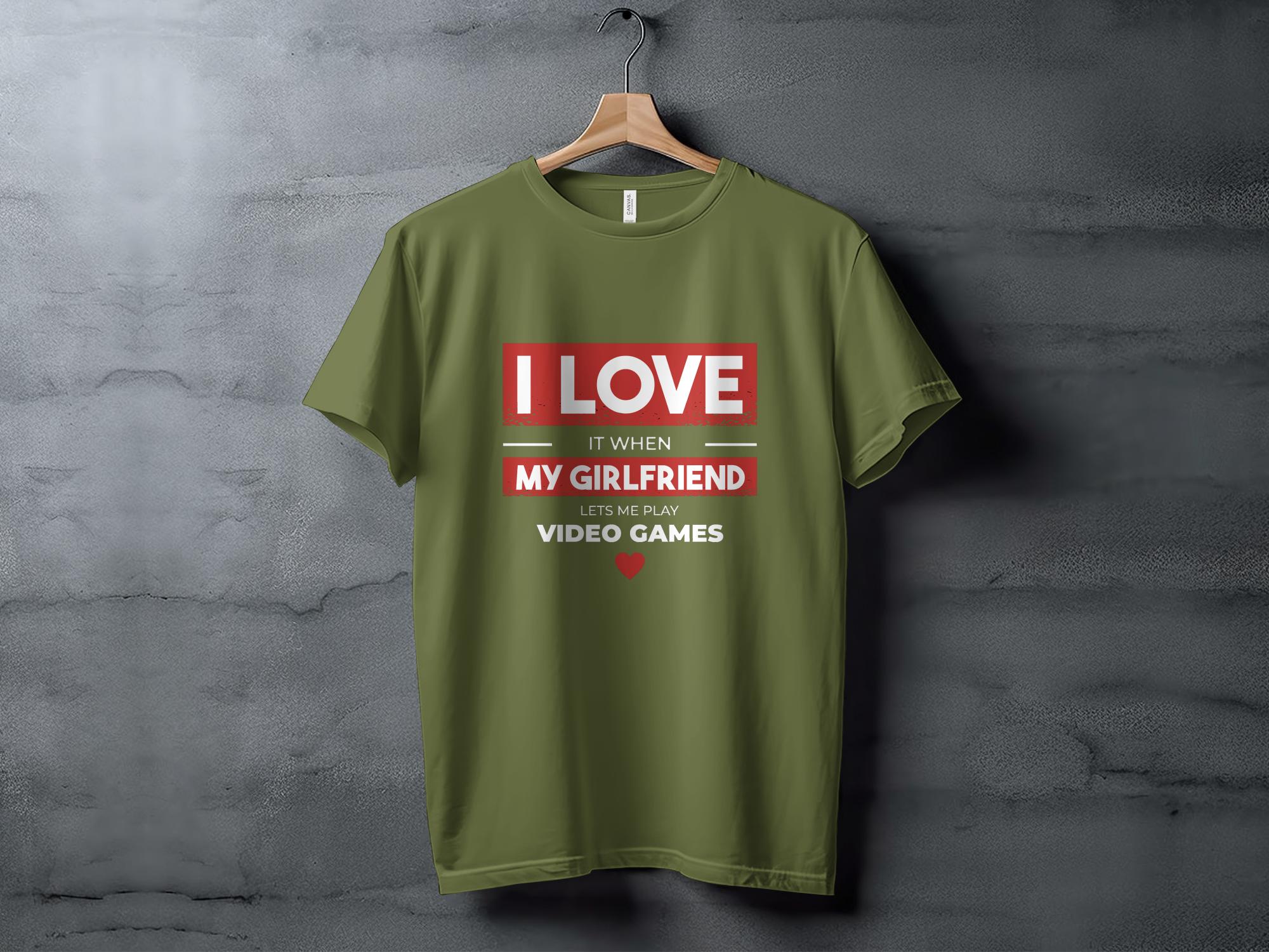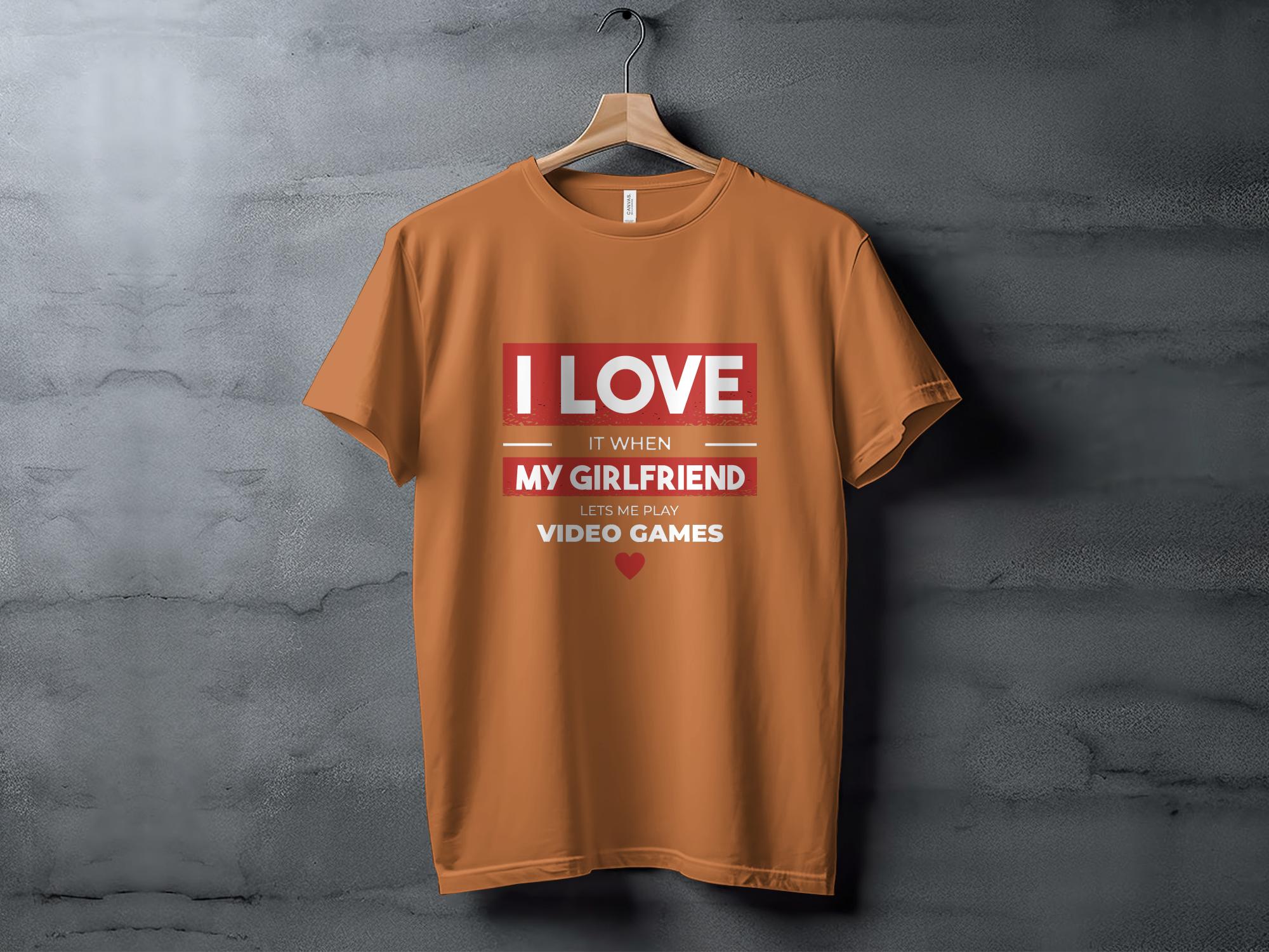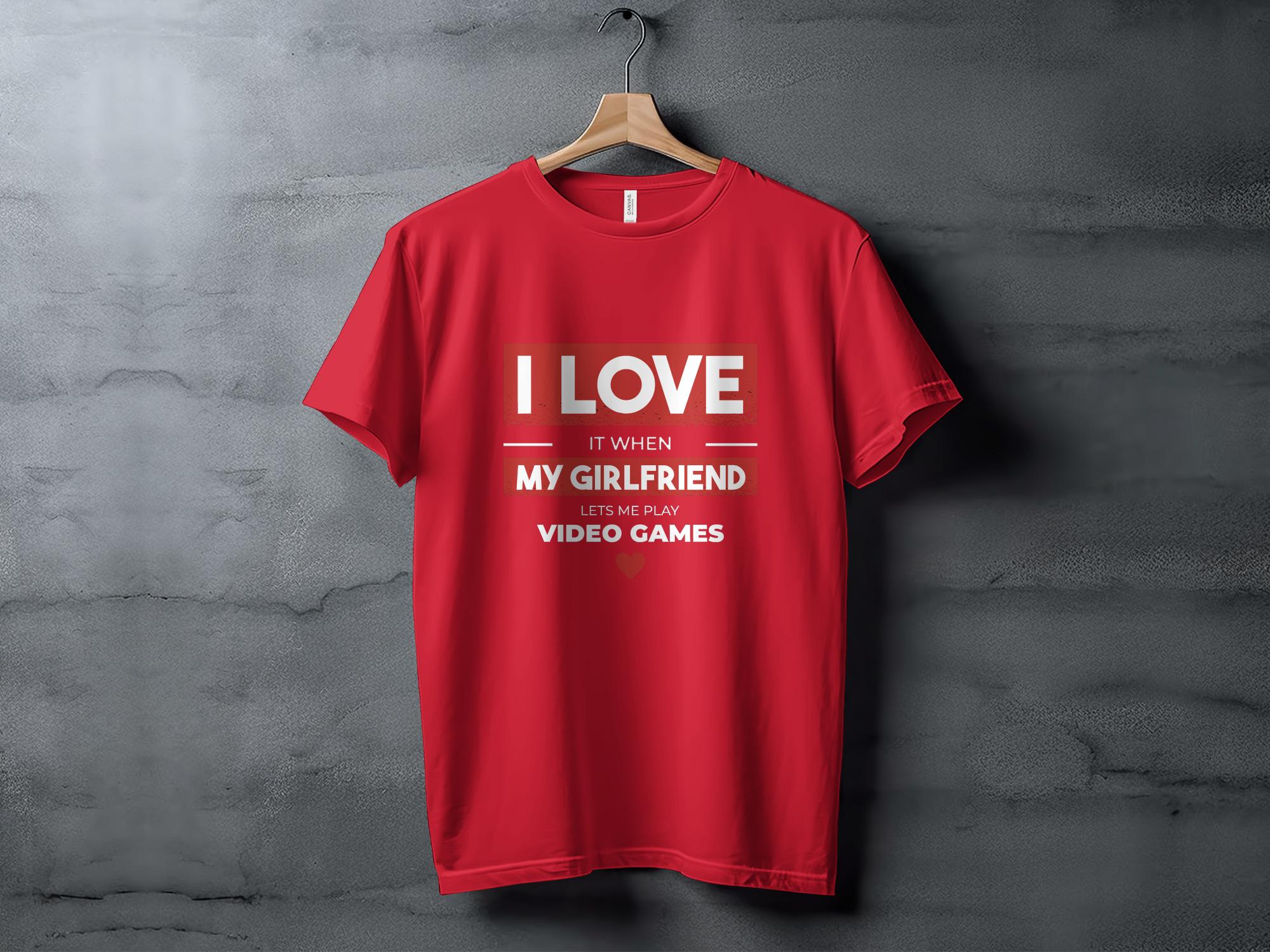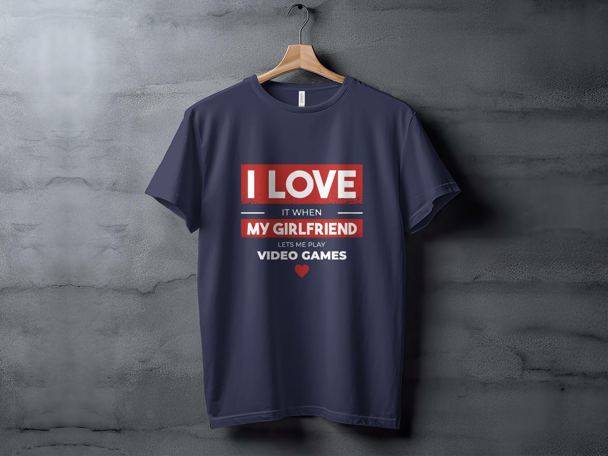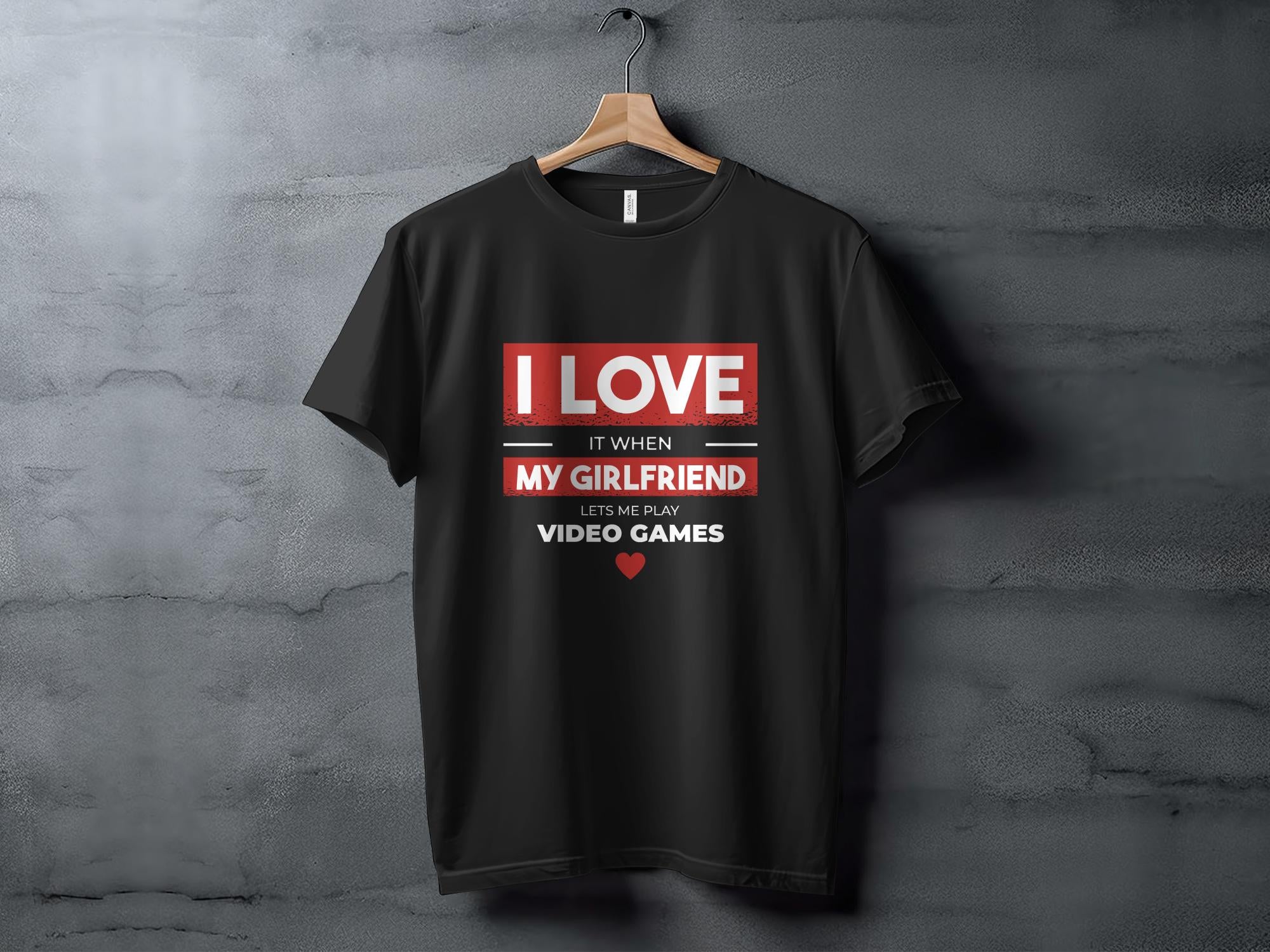 This humorous T-Shirt is perfect for the gamer with a good sense of humor. It features the playful phrase "I LOVE IT WHEN MY GIRLFRIEND LETS ME PLAY VIDEO GAMES" in bold, eye-catching lettering. The design is simple yet impactful, making it a great conversation starter or a fun gift for your boyfriend who loves gaming. It's comfortable for all-day wear, crafted from quality materials, and can be paired easily with casual attire.