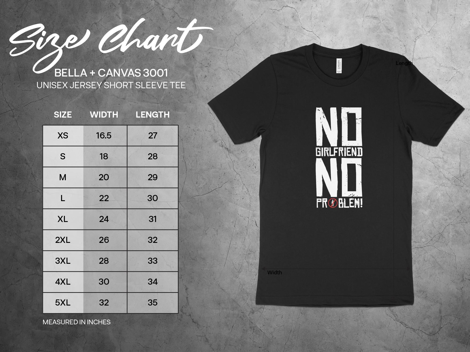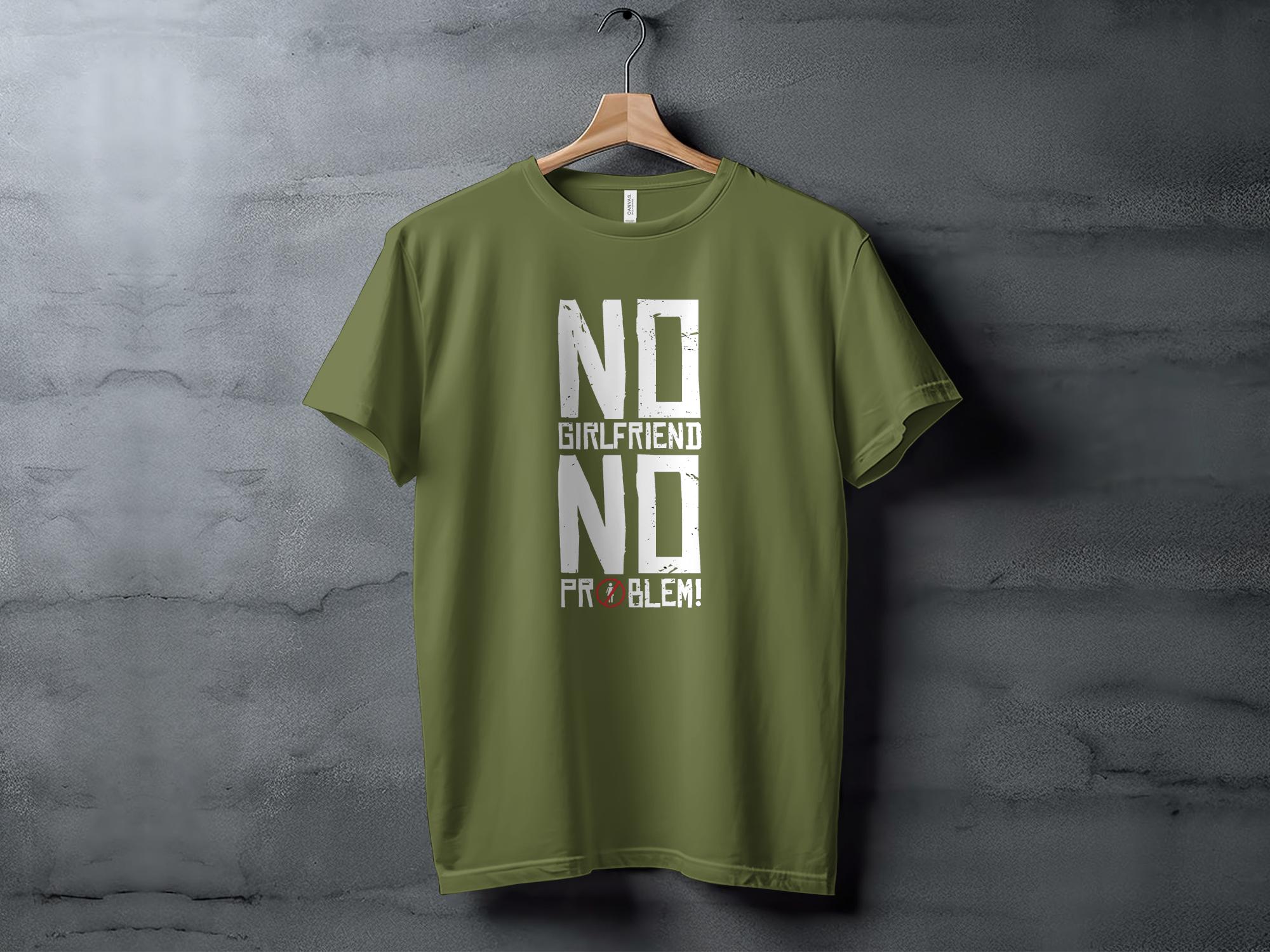 Embrace the single life with this bold and humorous t-shirt! Featuring the cheeky statement "No Girlfriend No Problem," this shirt is perfect for anyone enjoying the bachelor life or celebrating a friend's last days of singledom. Made from comfortable cotton, it's suitable for everyday wear or special occasions like bachelor parties. Give it as a lighthearted gift or add it to your own wardrobe for a touch of fun.