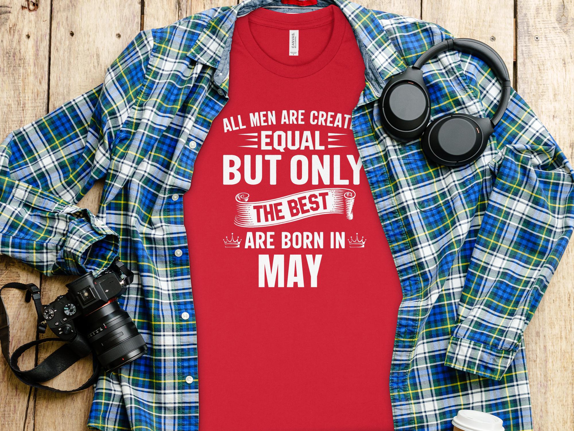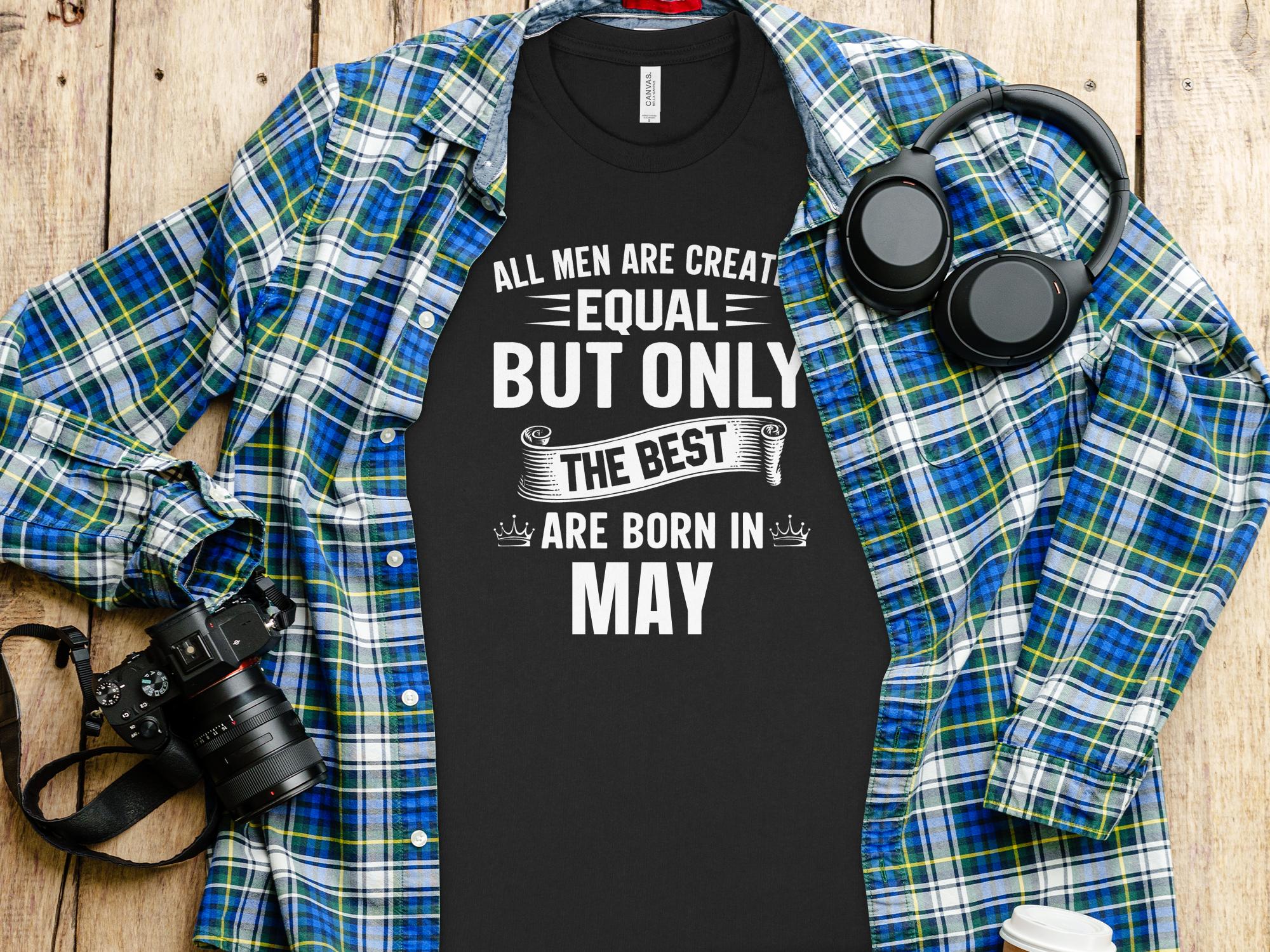 Men's Birthday T-Shirt, All Men Are Created Equal Best Born May Tee, Gift for Him, Unique May Birthday Outfit, Statement Shirt