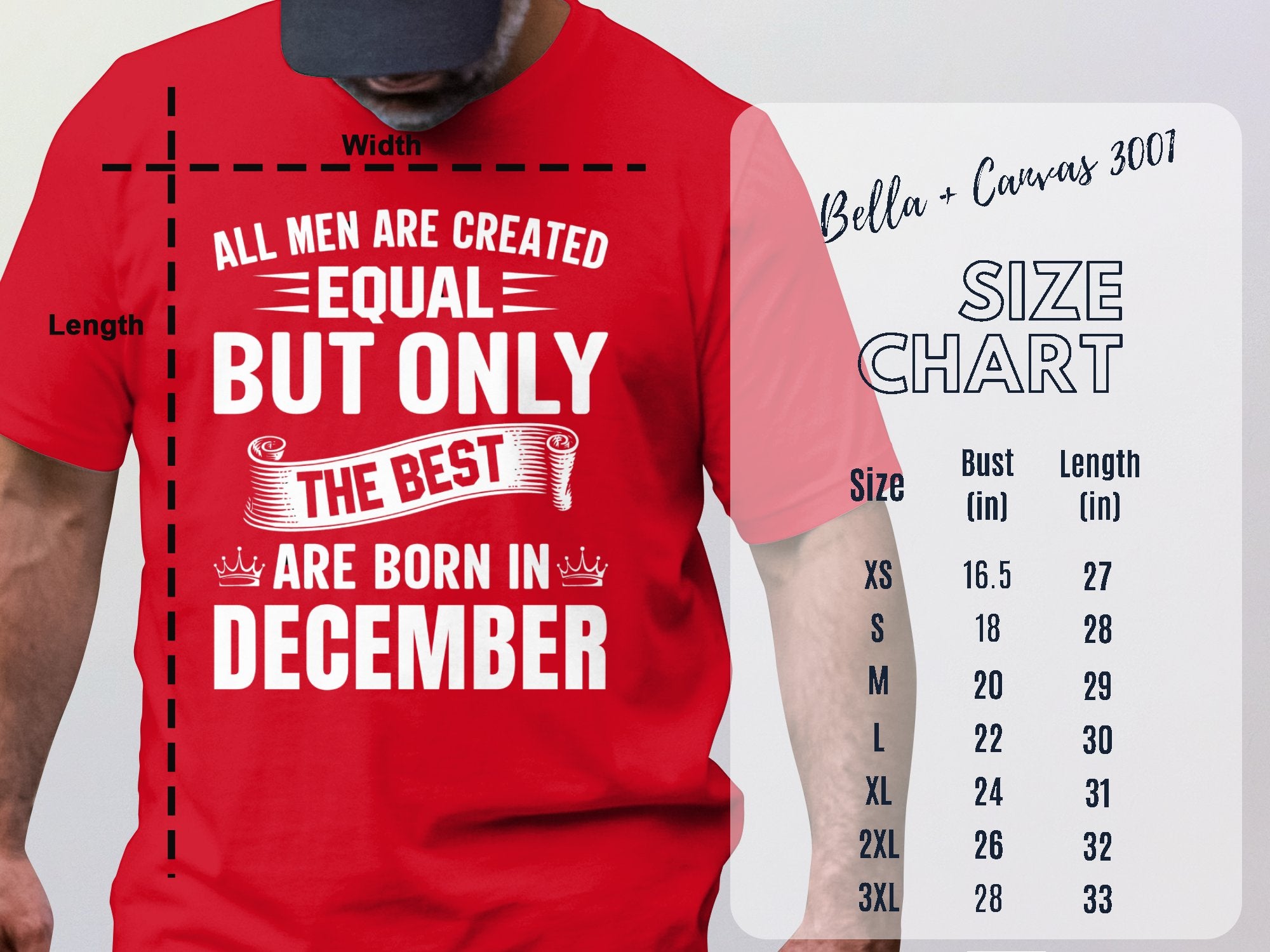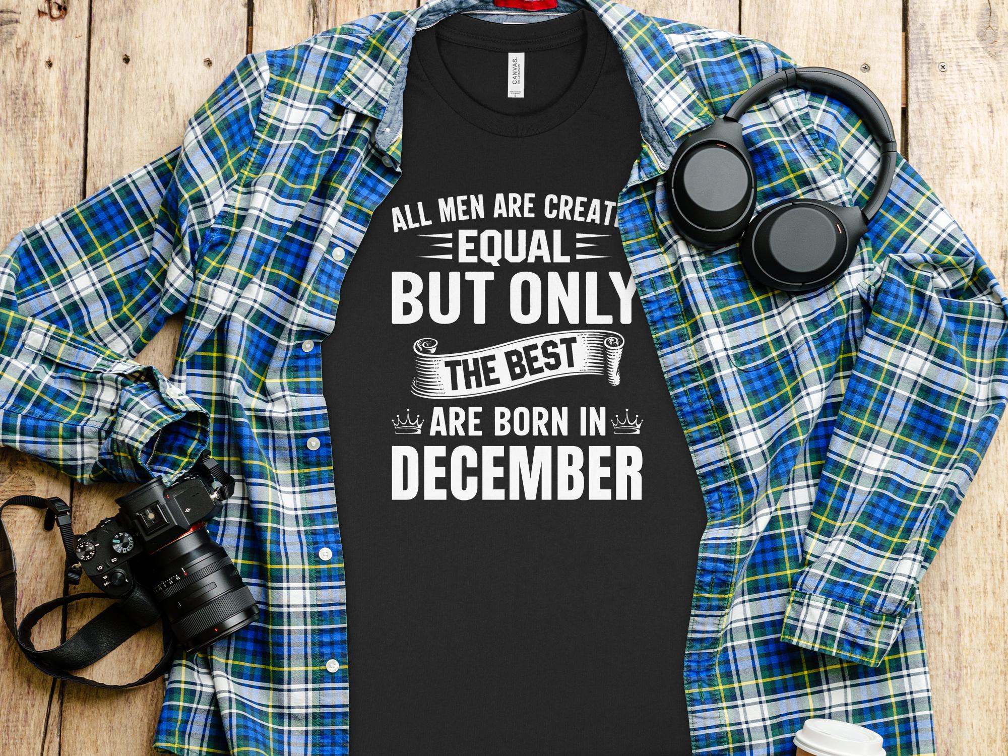 Celebrate the December born men in your life with this bold and stylish T-shirt that makes the perfect birthday gift. The shirt features a striking black and white design with the message "All Men are Created Equal but Only the Best Are Born in December", exuding confidence and pride for those special December birthdays. Ideal for casual outings, birthday parties, or as a standout piece in any wardrobe, this tee is made from comfortable materials and is sure to be a hit with those winter zodiac sign enthusiasts.